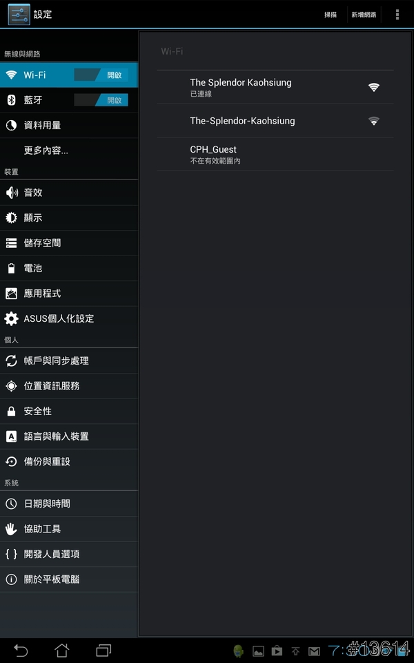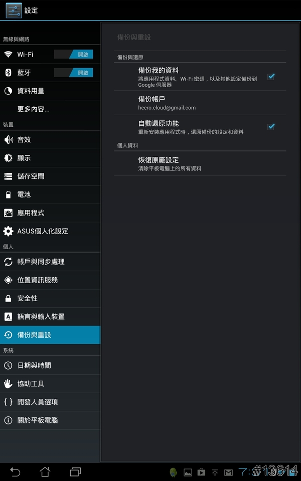 備份與重設,當平板如果怪怪的要回復原廠設定就是從這裡恢復原廠設定...