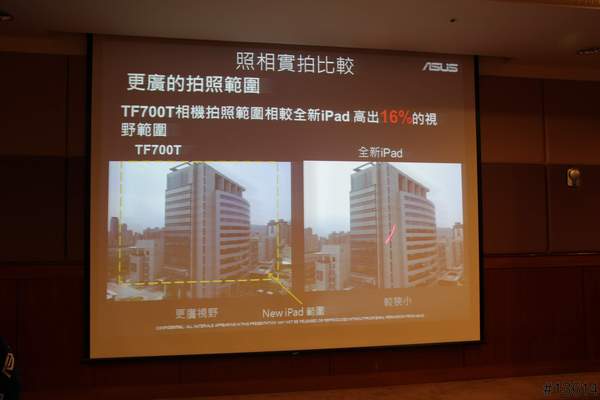 在更廣的拍照範圍看起來TF700相機拍照相較全新的iPad高出16%的視野範圍,下圖中可以明顯的看出...