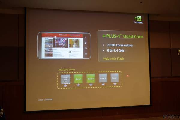 而且會自動調整核心運算,是相當智慧的NVIDIA Tegra3 四核心