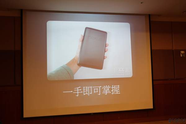 Nexus 7拿在手上剛好一手可以掌握,所以Nexus 7是攜帶方便,使用上沒負擔,單手使用剛剛好的平板...