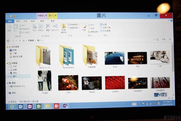 觀看圖片也是,所以可以確定TF600雖然是平板,但是操作介面與使用方式其實與桌機沒兩樣,最大的差異化應該就是TF600可以用觸控來操作,而家用桌機只可以使用滑鼠操作,而且TF600比較方便的是直接帶著平板就可以使用Windows 8系統,如果要鍵盤打字直接接上基座就可以,所以TF600使用上是比桌機要來的方便多了...
