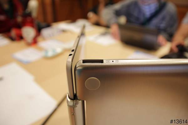 機身左側有SD讀卡機、microHDMI跟3.5 mm耳機插孔,插入耳機聆聽音效會更好唷!