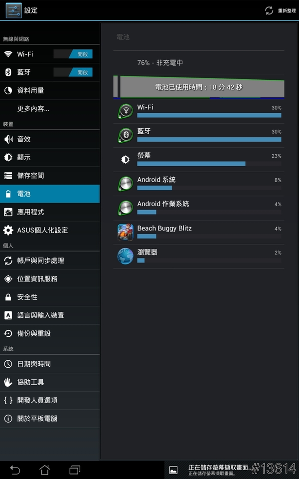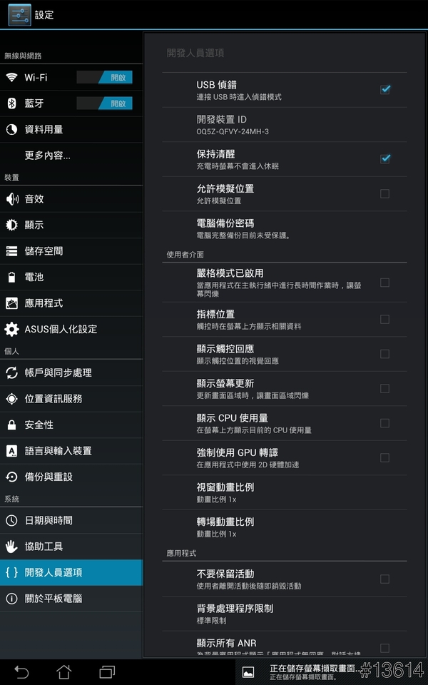 開發人員選項,在這裡可以設定保持清醒不進入休眠,不過如不使用狀態下還是建議讓平板休眠,這樣可以使平板壽命更加長久...