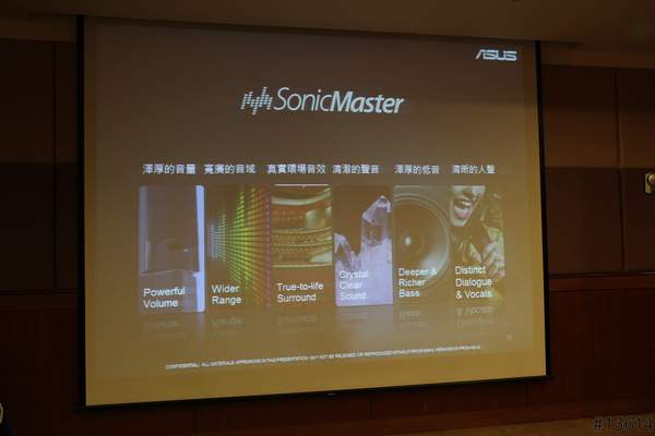 再來介紹音效部分,ASUS這次跟聲音大廠SonicMaster合作,讓聲音聽起來有更加渾厚,寬廣的音域,真實的環場音效,清澈的聲音,渾厚的低音,清澈的入聲效果...