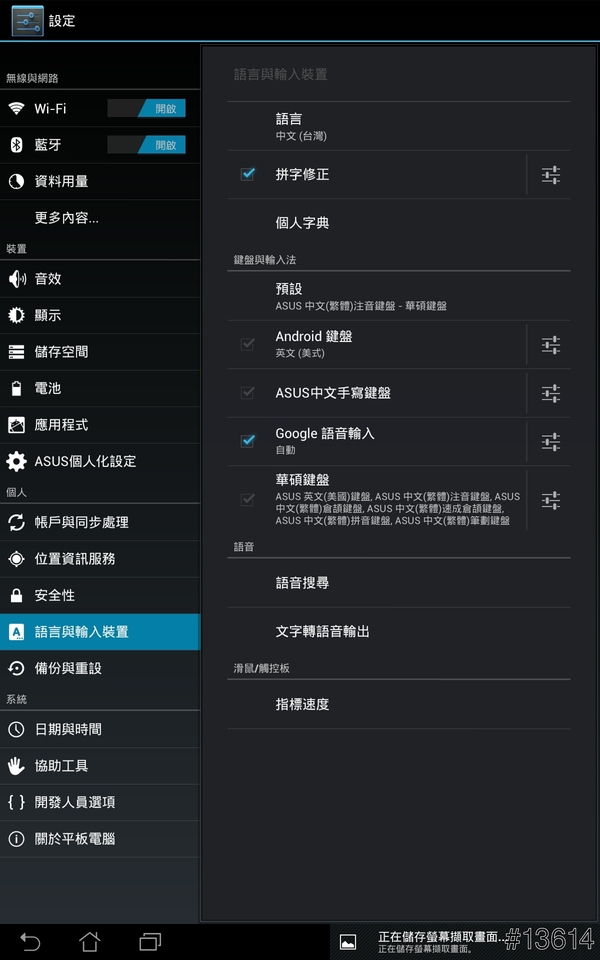 語言輸入與裝置,華碩TF700已經基本就內建4種輸入法了,如果不夠用還可以自行去市集下載...