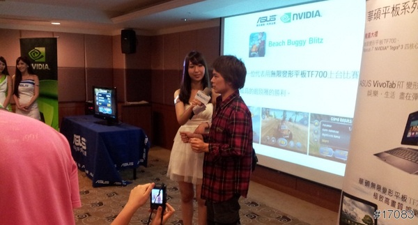 一進入會場,大家都卯起來是用擺飾在各個桌上的最新機型,變形平板系列TF600、TF700,以及迷你平板Nexus 7的功能及效果