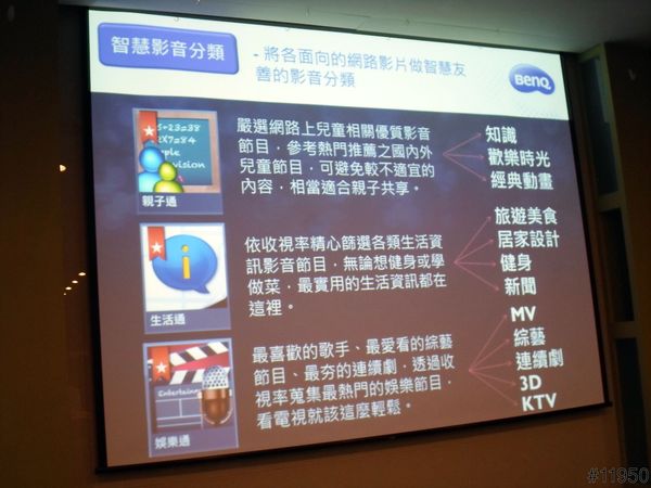 ▲BenQ Smart TV把各種影音分為親子通、生活通和娛樂通三大類