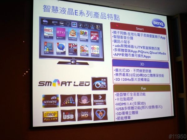 ▲BenQ Smart TV面板使用友達的優質LED Full HD高畫質背光面板,支援3 D撥放