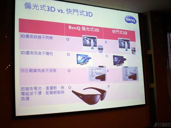 ▲本次BenQ Smart TV的另一項主打功能就是偏光式3D技術,改善了傳統的快門式3D技術的缺點,3D眼鏡再也不在需要電池了