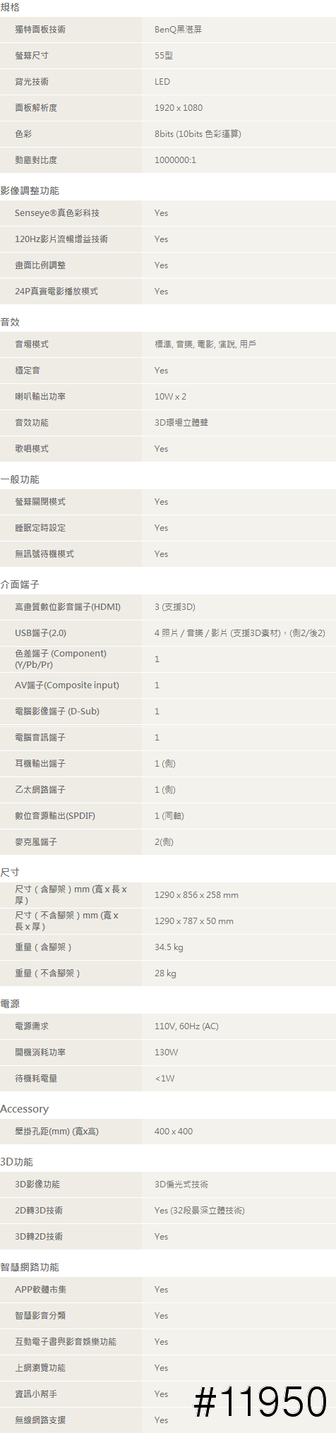 ▲另一台BenQ Smart TV E55-6500的詳細規格(圖片來源BenQ官網)