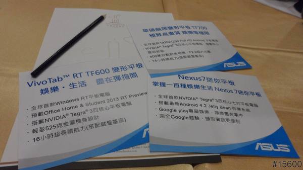 會場五面桌上都擺著今天的主角三款平板電腦供參加者拍照摸索,貼心的準備紙筆可以隨筆記錄,等著讓每位來賓入座,美麗的主持人也穿梭其中