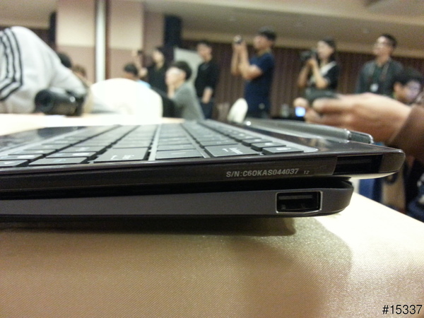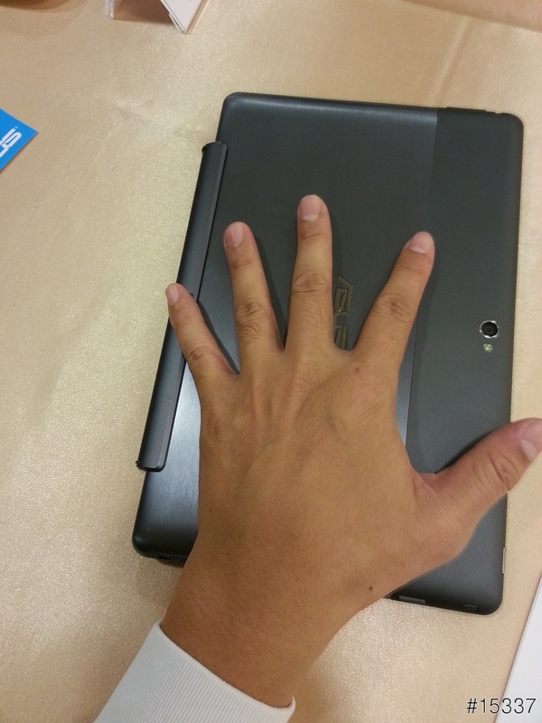 靜態圖~雖然只是背面,而且我的手大小也無法當標準,但,至少對我來說,家裡拿iPad,會場拿TF700,TF600看起來不小,但在我手上拿起來的握感最好,也最輕,且是意料之外的輕巧好拿~