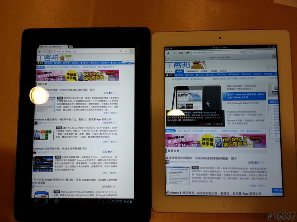 New iPad是4:3,TF700/600是16:9,但以拍照看起來,其實感覺是差不多的。至於New iPad的Retina螢幕畫質,可能是除非真的近看或久看,否則在實際觀看上並不會讓人真的特別指出差距的吧~