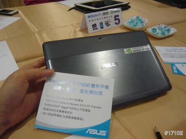 其實我這次的重點目標是ASUS VivoTab RT TF600變形平板,如果我記得沒錯的話她也是目前台灣唯一(全球唯二)的Windows RT平板。也是唯一的Windows RT變形平板(微軟的算變一半也沒電池)。當然不是說另外兩個主角不好,而是它們已經夯比較久了,身邊也有一些朋友已經擁有類似產品了。不過ASUS這三台搭配NVIDIA Tegra 3的優異產品在體驗過程中流暢的表現依然讓我映像深刻。