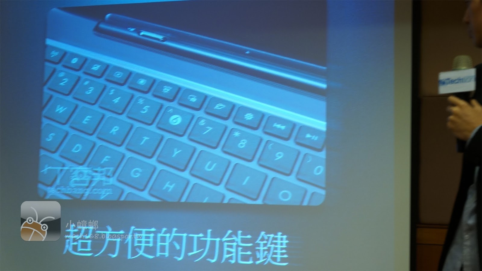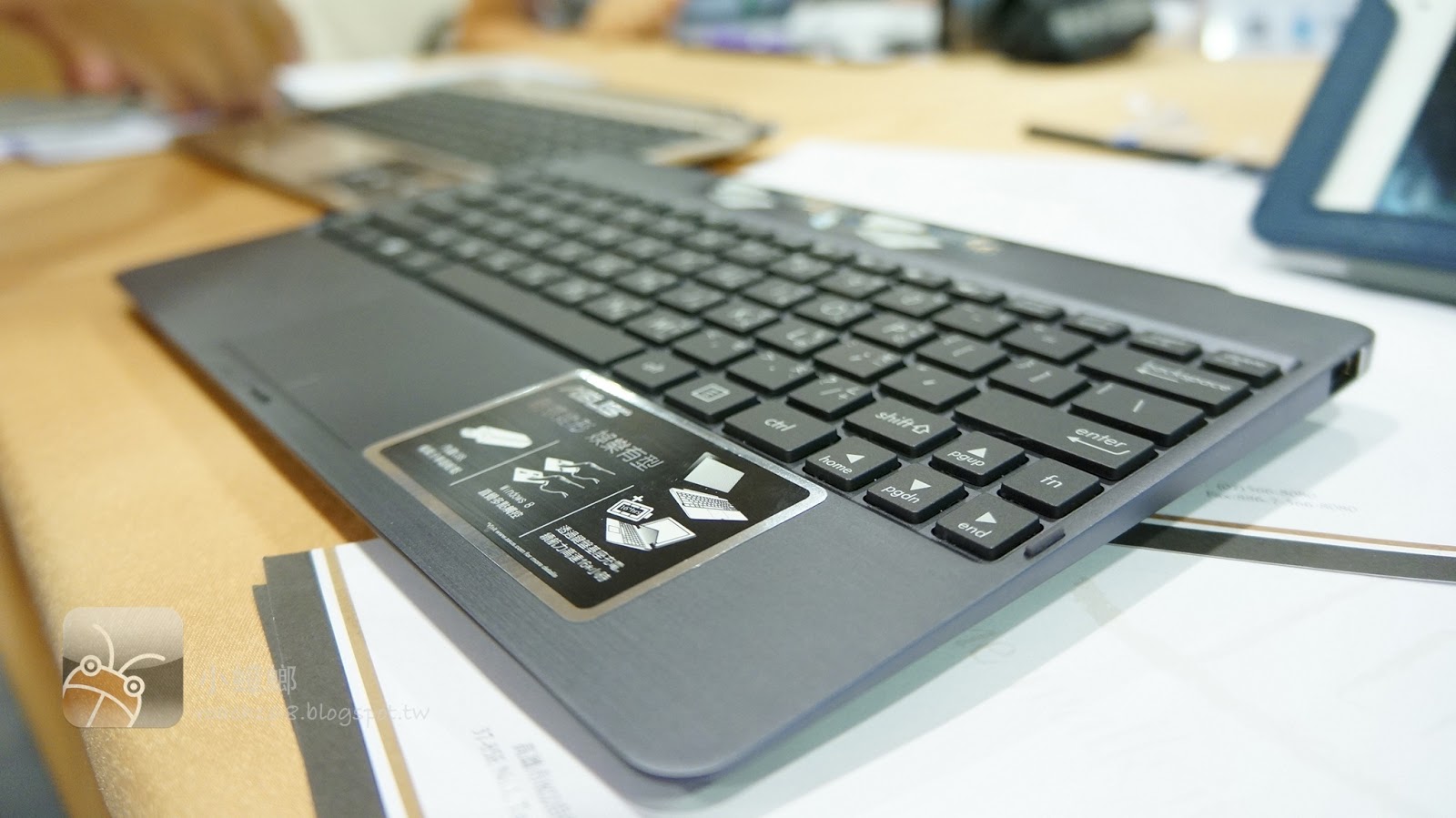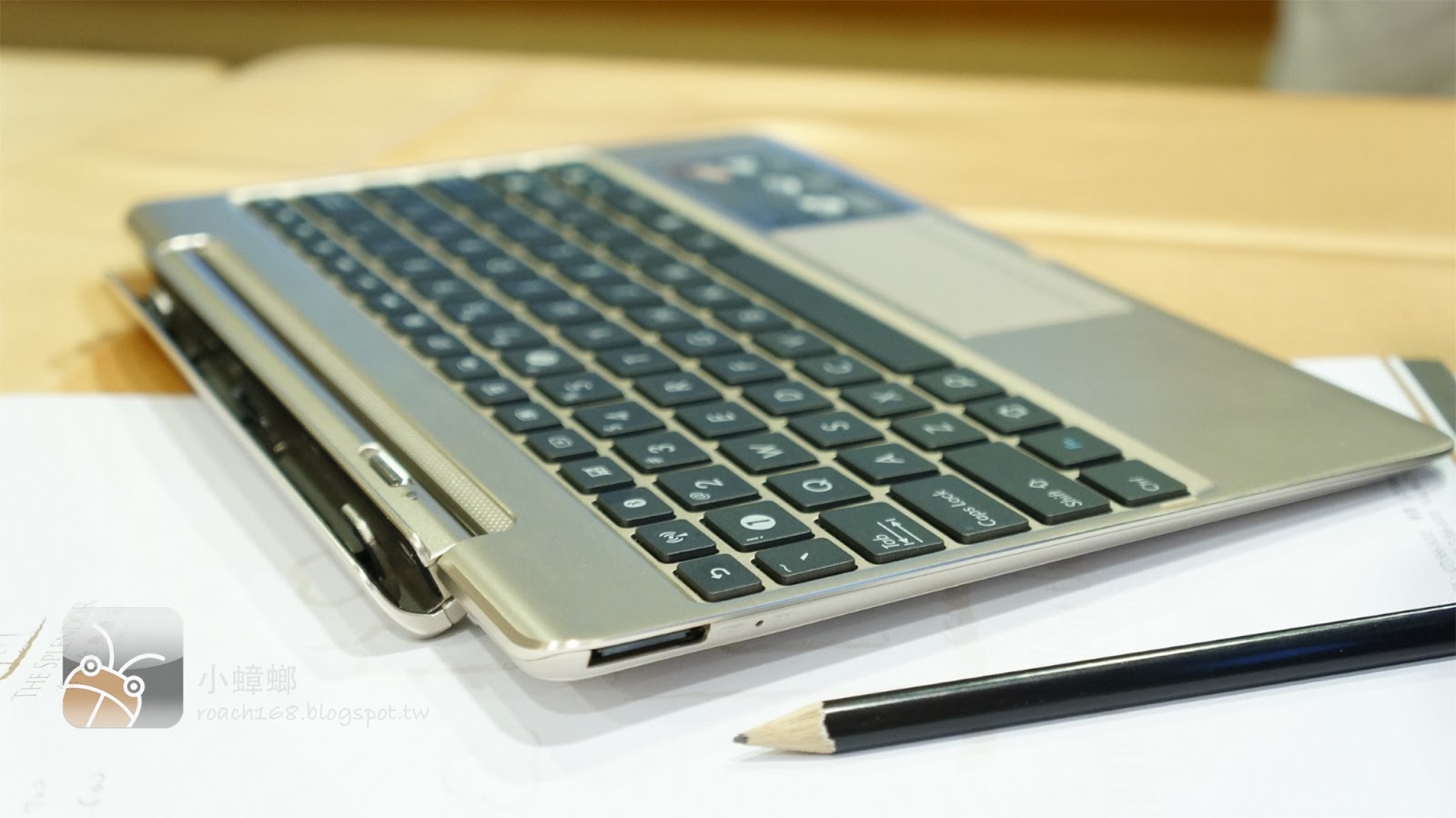 當然變形平板最重要的就是多了一個可以組合的鍵盤底座,讓你可以增加電池續航力,又可以輕鬆使用鍵盤輸入文字編寫文章等用途,讓一些想要擁有平板卻又不得不利用平板工作的人,可以一兼兩顧的啦