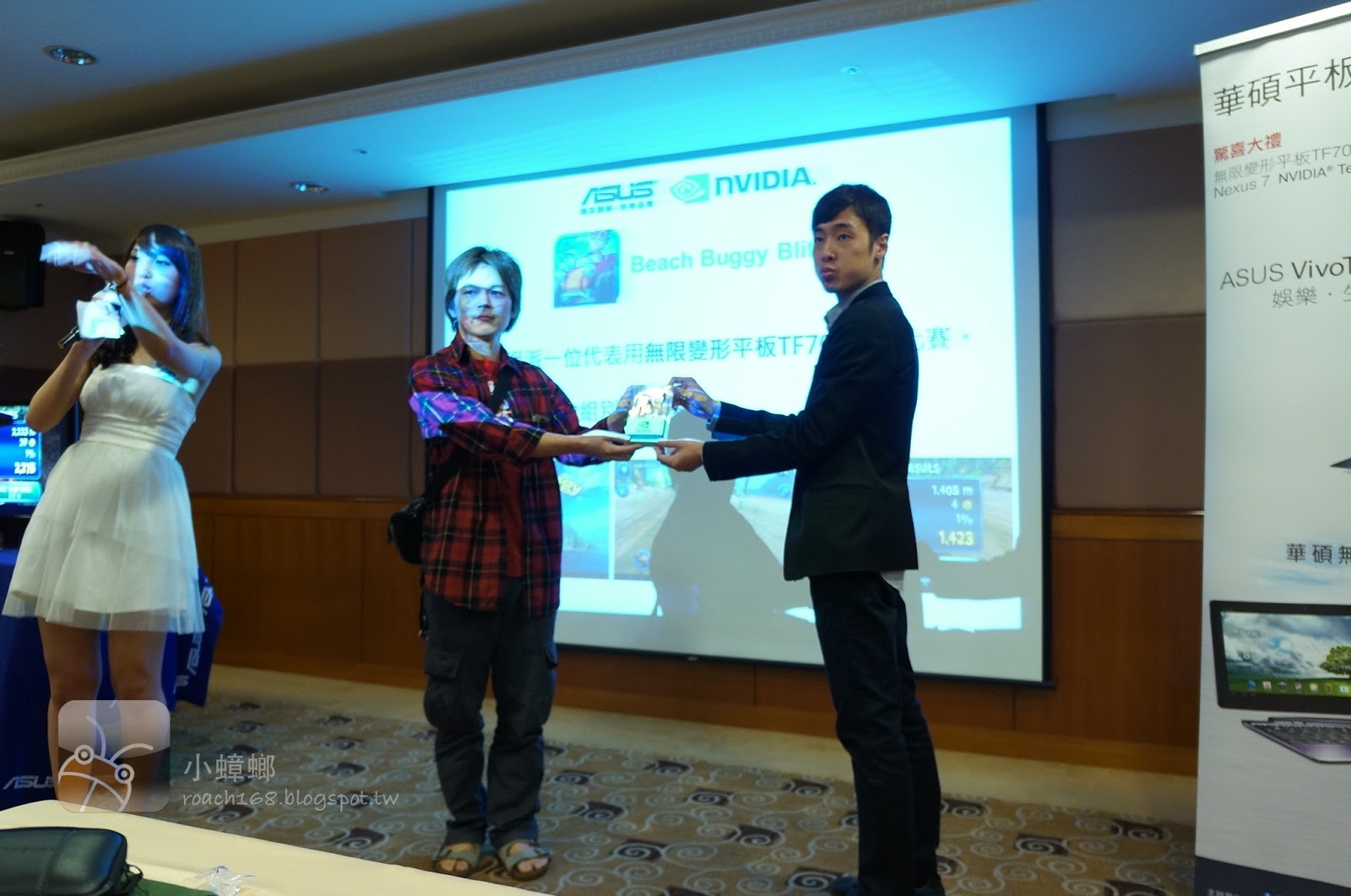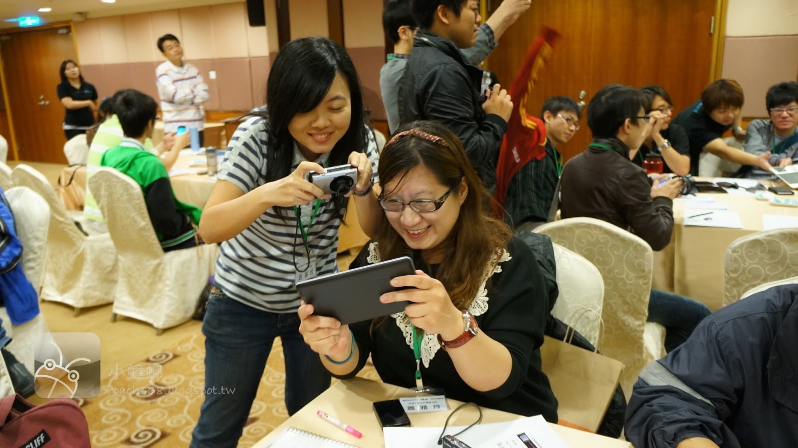 拿平板來打電動可說是一件還蠻爽的事,畢竟螢幕夠大,聲音也夠大,玩起來特別起勁啊。所以主辦單位舉行了一個小比賽來增加活動的趣味,這個遊戲我也是第一次玩,其實還蠻好玩的說,我看一堆沒上去比賽的朋友們,在下面也是玩得很開心啊
