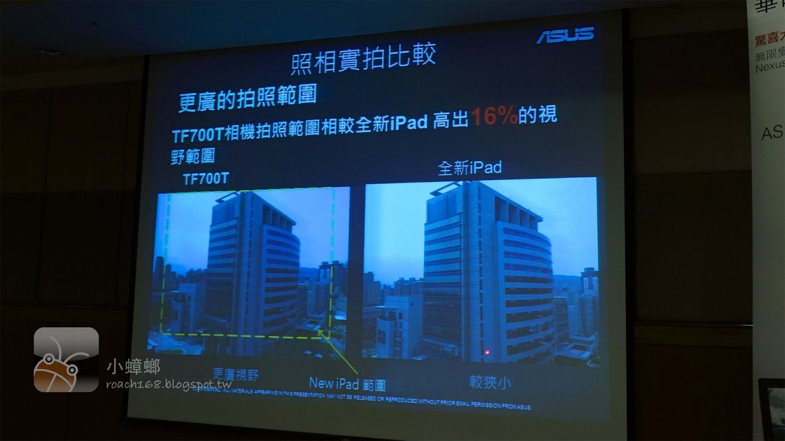 用iPad和TF700T的相機,打開做測試,可以參考一下,TF700T的視角確實較廣,可視範圍比較大