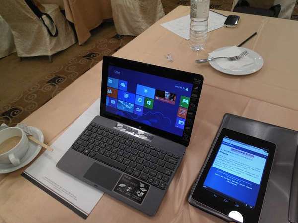 場地的安排,相當的寬敞,有五桌,每桌都放上三台不同型號的平板,讓大家好好接觸體驗。