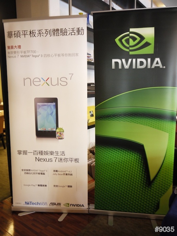 ▲ 一進到體驗會會場迎接我們的是Nexus 7 跟 nvidia 的看板,這台 Google 的小平板最近非常熱門,加上搭載高效能的 nvidia 處理器,讓這個產品備受關注。