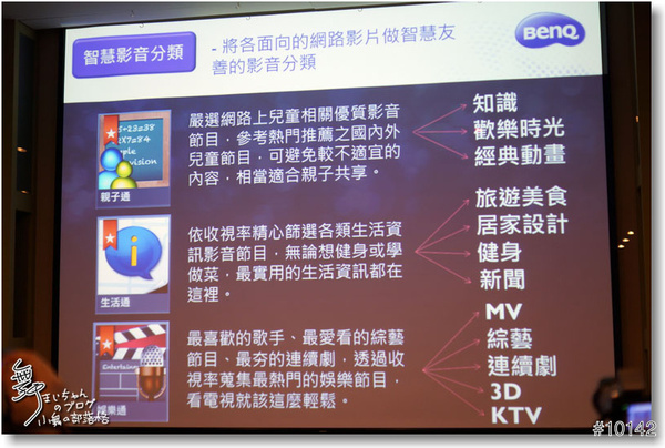 ▲BenQ也針對網路影片進行分類,並且每日每週都會更新,現在已區分了親子通、生活通、娛樂通等頻道,透過簡單的分類方便消費者操作與使用,並且有最新的內容