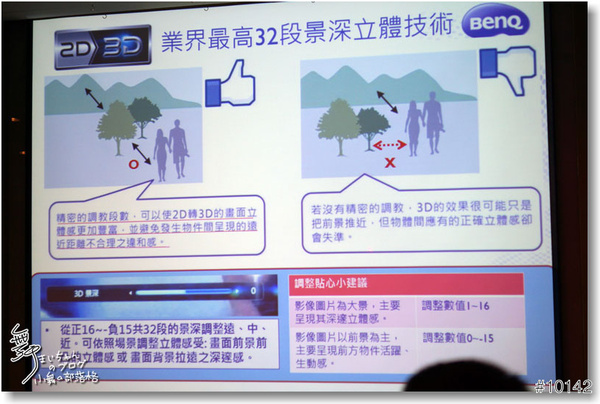 ▲而3D的立體技術,在一般電視可能只有強中弱三段的選擇,但BenQ透過同集團友達的技術支援,可以設定高達32段的景深立體技術,調整最佳的3D立體模式,讓畫面更立體呈現。