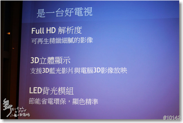 3D方面:不閃爍的偏光式3D技術、32段景深技術、120Hz流暢增益