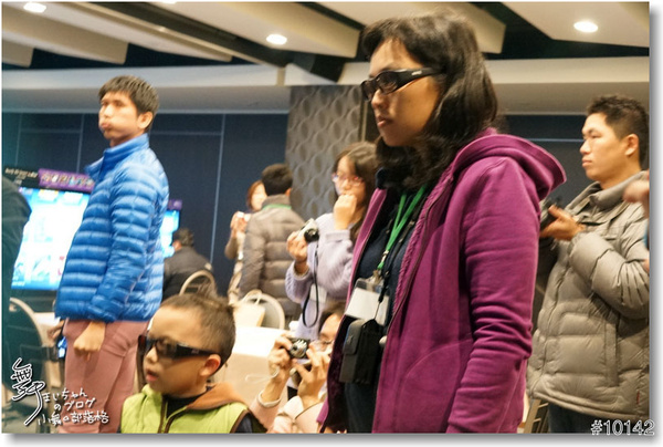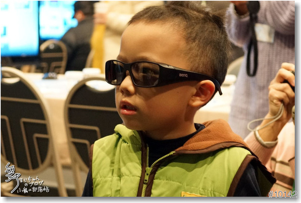 ▲在競賽活動告一段落,就是下午茶時間,這時示範機也播放起3D電影,只見大家對BenQ的32段景深非常有興趣,目不轉晴的研究著
