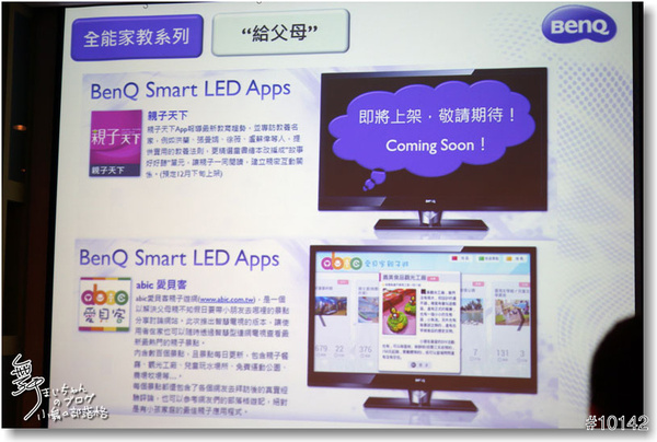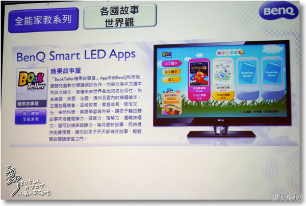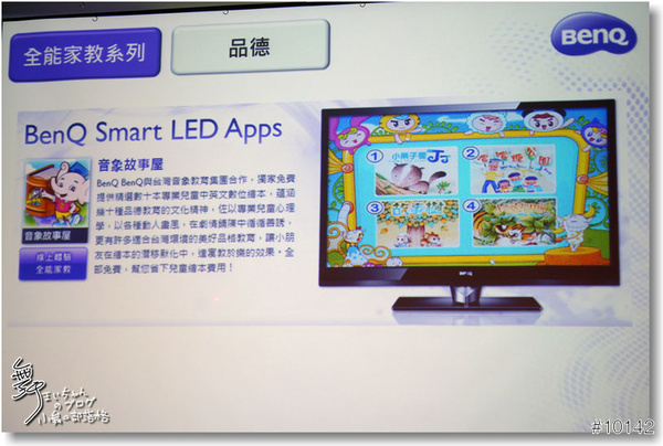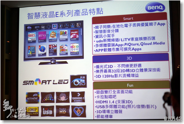 ▲很快的介紹了BenQ Smart LED TV的各項功能與特色,從中可發現這次BenQ團隊真的花了很多苦心在應用層面,除了硬體規格進步,在軟體部份也結合了多家知名廠商獨家合作許多好用的APP,可說適合家裡的小朋友和大人互動使用,真是太方便了