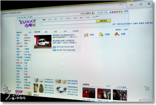 ▲如果要進行網頁瀏覽,目前首頁是設定YAHOO,內建預設有七大類書籤,可以讓使用者自由編輯