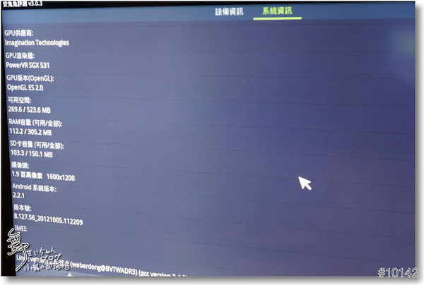 ▲《關於裝置》:目前Android版本是2.2.1,現場PM說目前不打算升級Android版本,但BenQ自己寫的系統版本則會不定期更新
