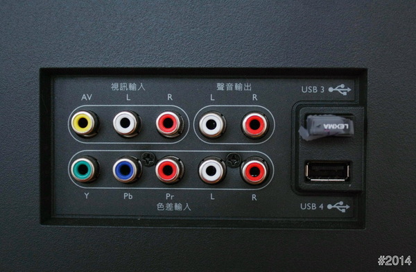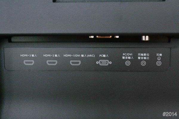 3個HDMI連接埠(其中一個兼做DVI輸入埠使用)、PC D-Sub連接埠、PC/DVI聲音輸入埠、同軸聲音輸出埠、耳機接孔。