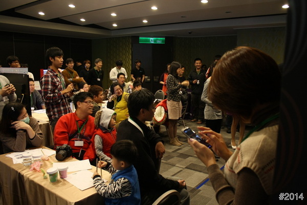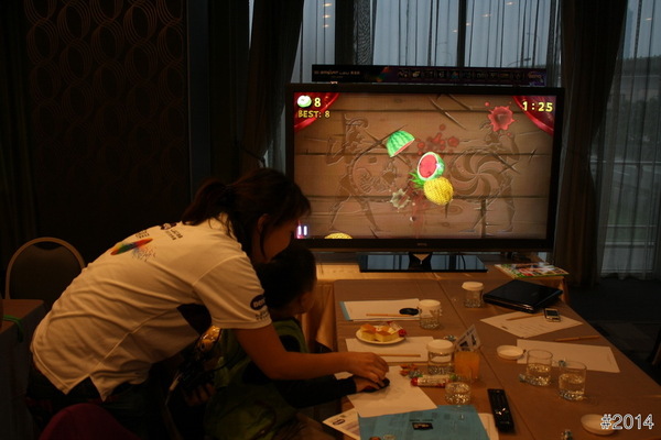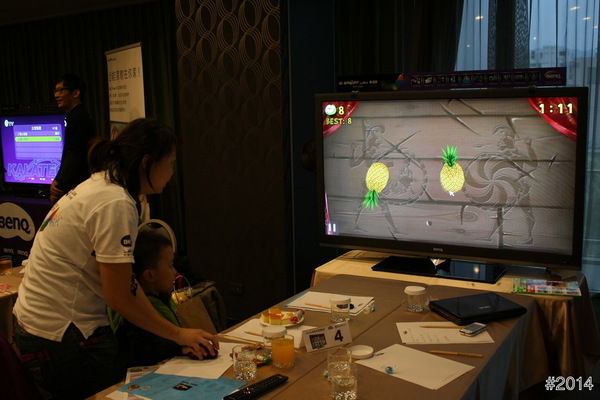 工作人員在現場除了有問必答,對小朋友要玩切水果遊戲,也教導如何用滑鼠玩。