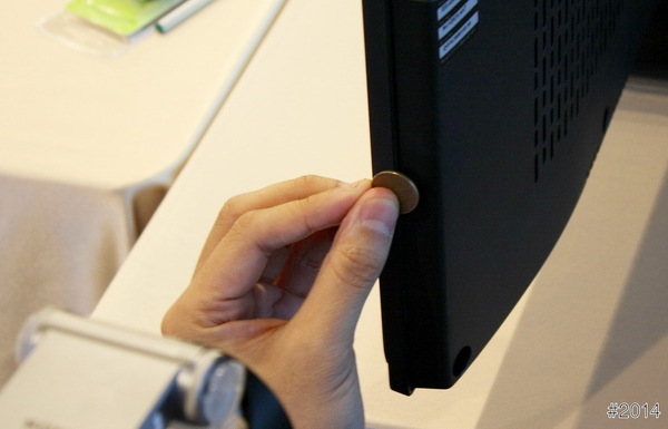 Smart LED TV 厚度,比一元硬幣直徑稍微再多一點。