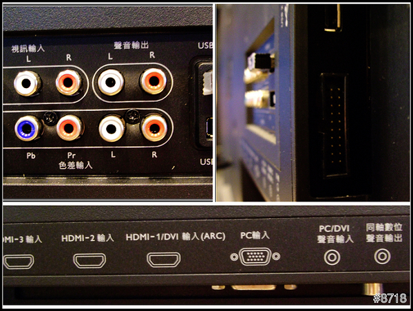 幾乎能用到的介面和端子在這台液晶電視上一樣都不少,右一內的接孔是電視盒的插頭。