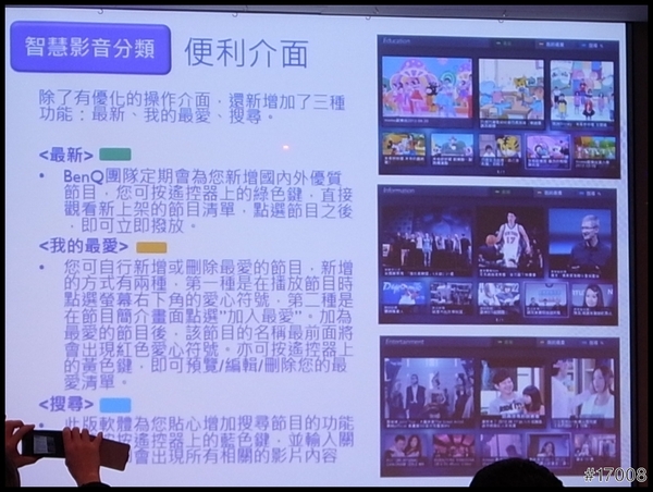 BenQ Smart LED也提供智慧節目分類,快速、方便查找,不用像傳統第四台一樣盲目的從1轉到100~