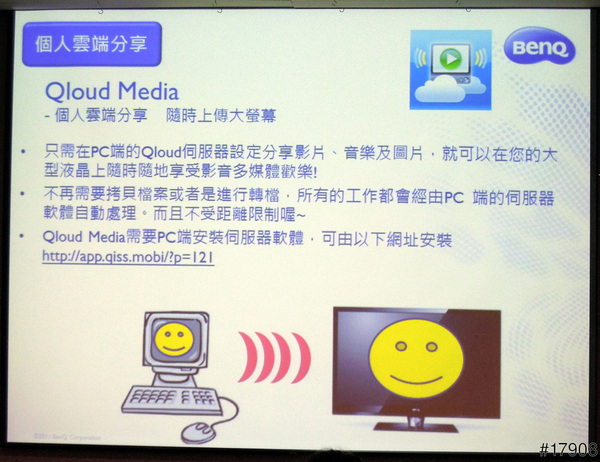 提供Qloud Media,讓你可以進行個人雲端分享,個人電腦內的影片圖檔不用再用隨身碟copy來copy去,直接用雲端分享就可以用電視看大畫面了。