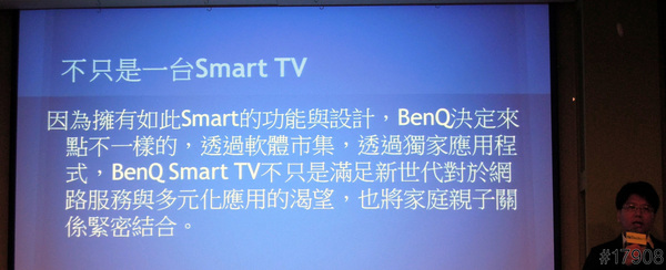 才剛坐下來,體驗會就正式開始了,由美麗的主持人進行開場,接著就由BenQ產品經理金先生進行BenQ smart TV的介紹。