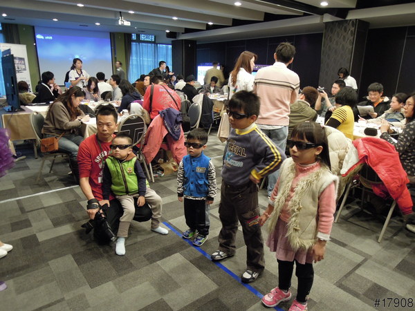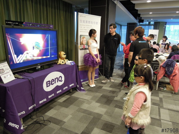 現場有許多家長帶來的小朋友,一個個目不轉睛的盯著3D影片,3D電視的魅力真大呀,這樣帶小朋友來會場的家長也輕鬆多了,同時由這裏也可看出偏光式3D的好處”3D眼鏡輕便”,連小小朋友戴了都不會被眼鏡重量壓得不舒服,還有因為BenQ的3D不閃爍,大人也能放心讓小朋友看3D電視,不用擔心小朋友的眼睛會疲勞不舒服。