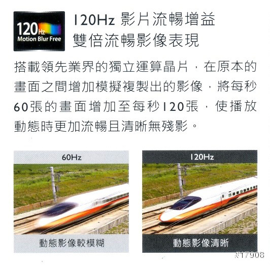 這就是120Hz影片流暢增益技術,可避免影片動作格放不清析。