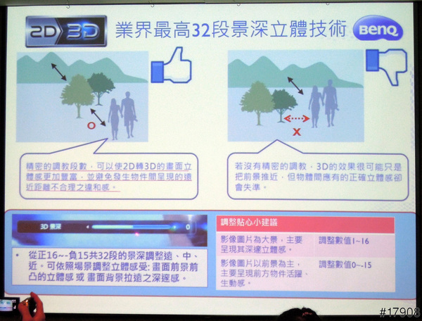 BenQ 3D smart TV擁有傲人的32段3D景深技術,讓3D更立體。