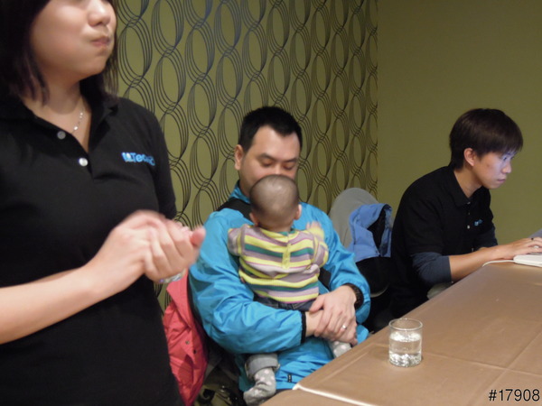 在會場的正後方是工作人員區,沒錯,因為今天是假日,有小baby的工作同仁不得矣把baby帶來現場,真是辛苦呀!跟他們聊了一下,小baby是個女生,很乖呢,在後面安安靜靜不吵不鬧。雖然他們對我拍照沒表示意見,不過我想還是不放baby的正面照,以示尊重。BenQ的工作人員,你們真是辛苦了。
