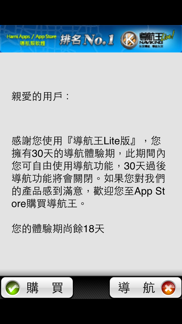 如果你還不知道中華電信有送導航王,則可以下載這個免費版本,然後就會自動享有全功能。