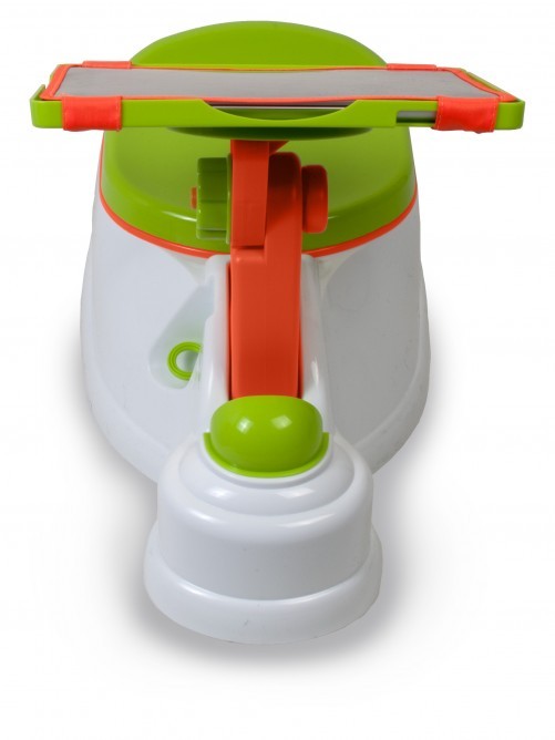 這款 iPotty 是在 2013 CES 展上新推出的產品,有一個可拆的馬桶座,前方還特別設計有放置 iPad 的支架,提供小朋友可以乖乖上廁所使用。iPotty 的 iPad 支架提供垂直、水平兩種擺放方式和 3 種不同角度的切換,適合 6 個月到 3 歲的小孩使用。