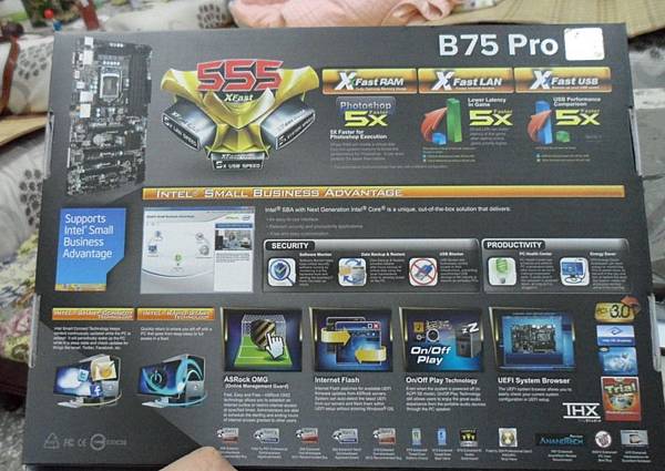 ASROCK華擎科技 B75 Pro3這張主機板仍然延續華擎科技一貫的價格及性能比優勢,無論是價格或是用料都有一定的水準,同樣的選擇一線廠商主機板產品,華擎在功能部分總是有特別讓人覺得給的比別家多一份用心,(EX:華擎的B75 Pro3透過轉接晶片的方式就是比別家只有原生一組SATA3 6Gb/s的B75主機板多了兩組SATA3 6.0Gb/s接頭,讓使用者的選擇性更多),軟體的部分,這張華擎B75 Pro3主機板有配備Intel小型企業優勢工具 (Intel® SBA) 生產力套件,可以更有效率的將軟應體予以整合,對於中小型企業用戶的系統安全性與管理來說可以說是極有幫助,另外華擎獨家針對使用者特別下功夫的555的[有感]科技,讓使用者無論在上網或是資料傳輸存取及處理速度上都能更勝一籌,再者就是這張的價格部分來說非常實惠(價格約在新台幣二千三百元左右),比同級的產品價格更有競爭力,加上華擎阿沙力的給予消費者三年台灣本島到府收送與包含人為損壞在內的六大免費保修服務,讓消費者買的放心、回家使用安心、對華擎揪感心的雙贏局面,這張物超所值且物美價廉的華擎B75 Pro3主機板真是蠻不錯的電腦組裝採購好選擇!