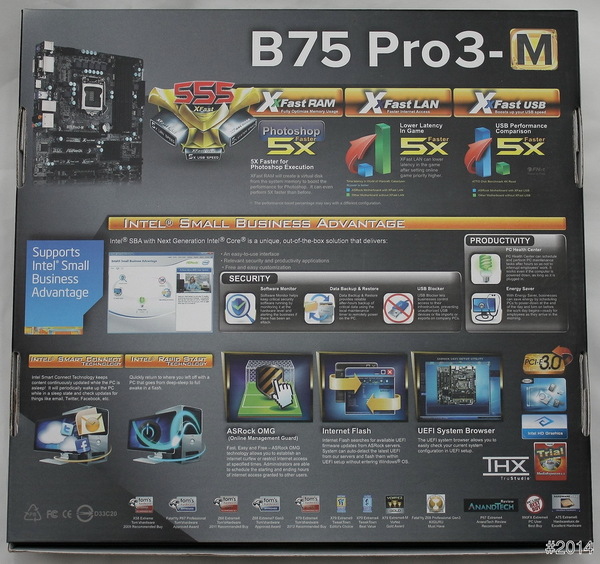 此外…Intel 快速儲存技術 (IntelR RST) 可提供快速的系統開機時間與應用程式載入時間,協助您快速開啟常用的應用程式,B75 高速晶片組搭配第 3 代 IntelR Core i3/5/7 處理器,乃是小型企業運算必備的智慧型平台。