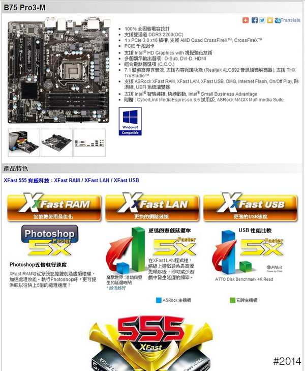 ASRock B75 Pro3-M 特色及特點: