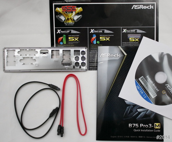 主機板配件 - 驅動光碟、SATA 6G及SATA 3G排線各1條、後檔板及說明書等。
