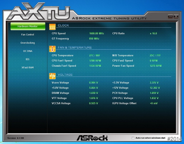 華擎還有另一個很方便的 AXTU工具,直接可以看到 CPU的外頻跟倍頻、風扇轉速及溫度、電壓。