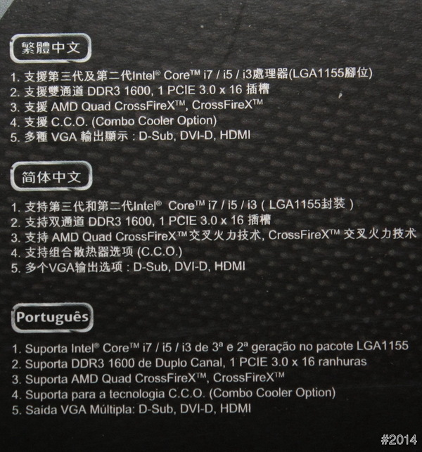彩盒側面 - 多國語言及主機板特色。