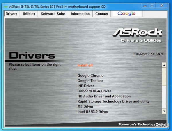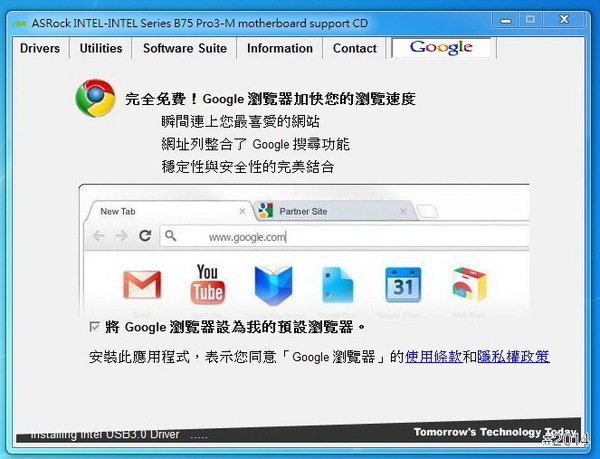 灌完作業系統,放進 驅動光碟,會直接顯示安裝免費的 Google瀏覽器。